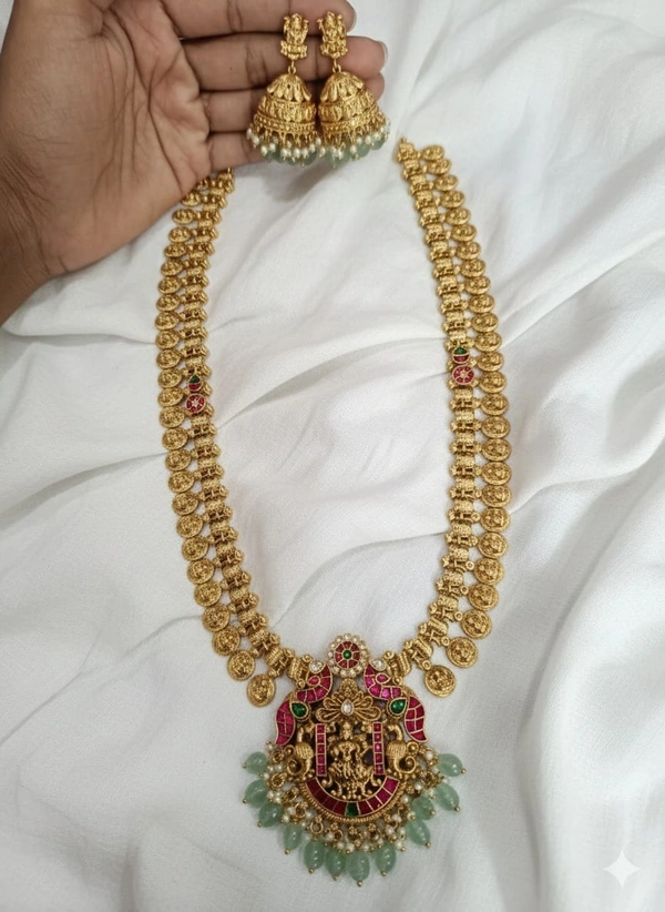 jadau kundan locket with kasu long haram